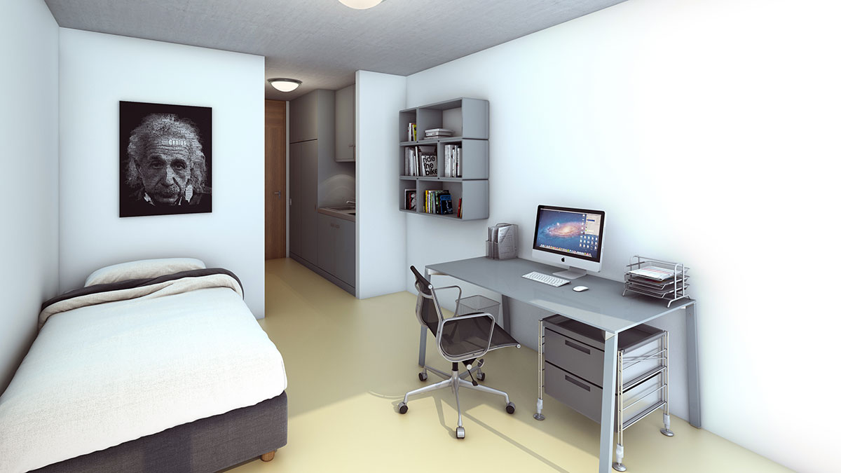 Ce foyer se situe au-dessus d’une crèche. Il propose 111 lits dans des studios pour 1 personne (dont 4 sont aménagés pour un accès en chaise roulante) et 6 appartements de 2 pièces pour 2 personnes. 4 salles communes et une buanderie sont mises à disposition des résidents. Une cave privée peut être louée pour un montant additionnel de CHF 20,- par mois.